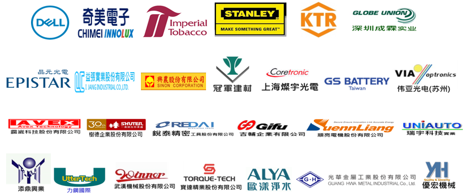 我們輔導的實績:戴爾(Dell)、群創光電(原奇美電子)、上海燦宇光電(中光電集團)、德商偉亞光電(蘇州VIA)、樹德企業(國家磐石獎、小巨人獎)、靄崴科技、益張實業、武漢機械、昌賦工業、匠豐精密、添鼎興業、優宏機械、吉輔企業、寶達精業、苗勝金屬、華勝自動化、台英帝國(全球第四大香菸製造集團)、光華金屬、益銳公司(小巨人獎)、歐漾淨水、鉅瑋實業、銳泰精密工具、頡鋒實業、毅琦工業、瑞宇科技、深圳成霖實業、順亮電機、台灣開天傳動科技(KTR)…等,橫跨光電、機械、電子、化工、工具機、金屬製品、手工具、淨水、不織布及無塵紙生產加工等不同產業及規模之公司。