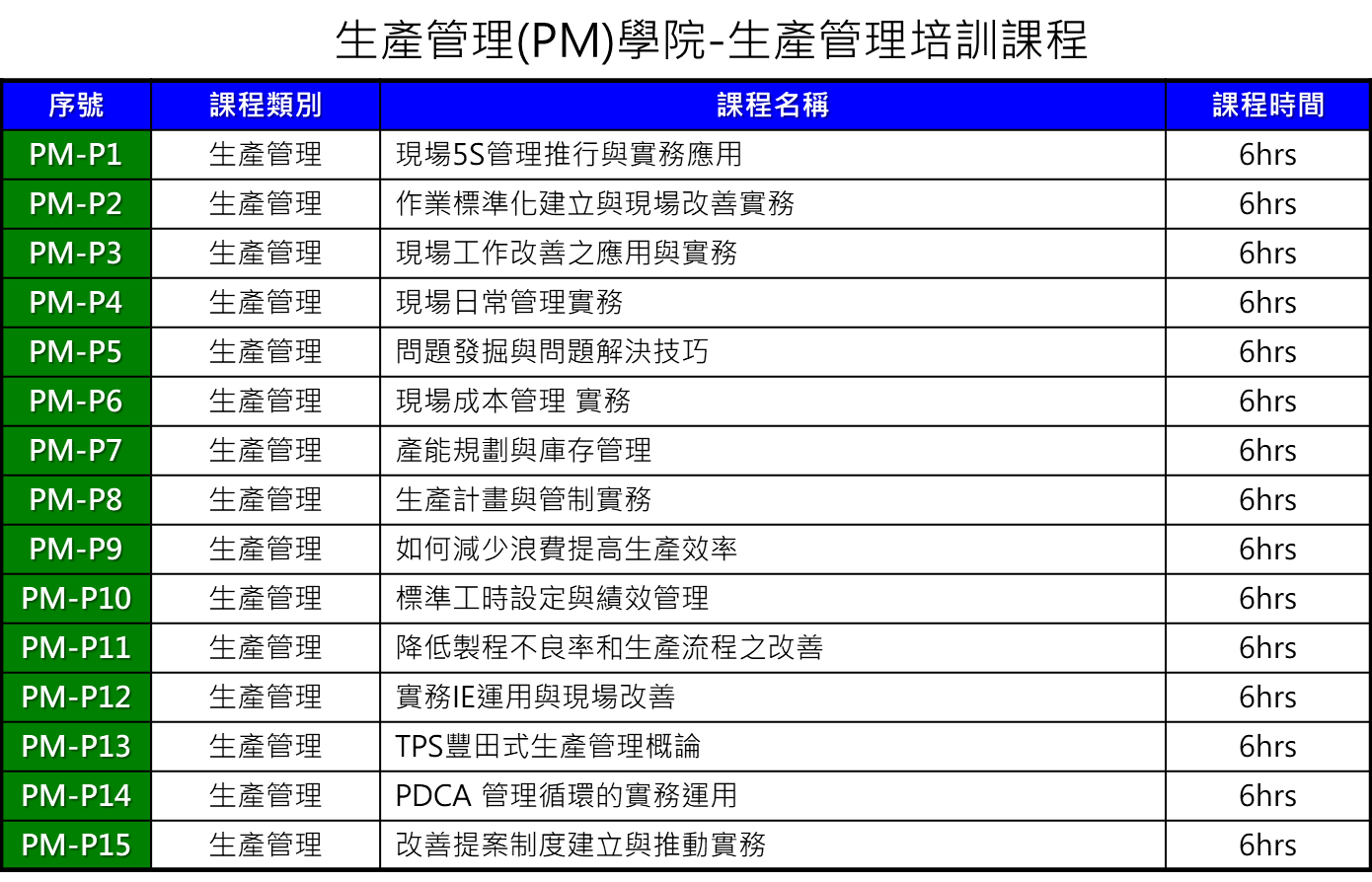 生產管理學院培訓課程 (PM)